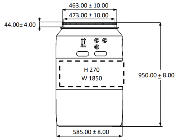 • ขนาด: กว้าง 585 มม. (±8 มม.) | สูง 950 มม. (±8 มม.)