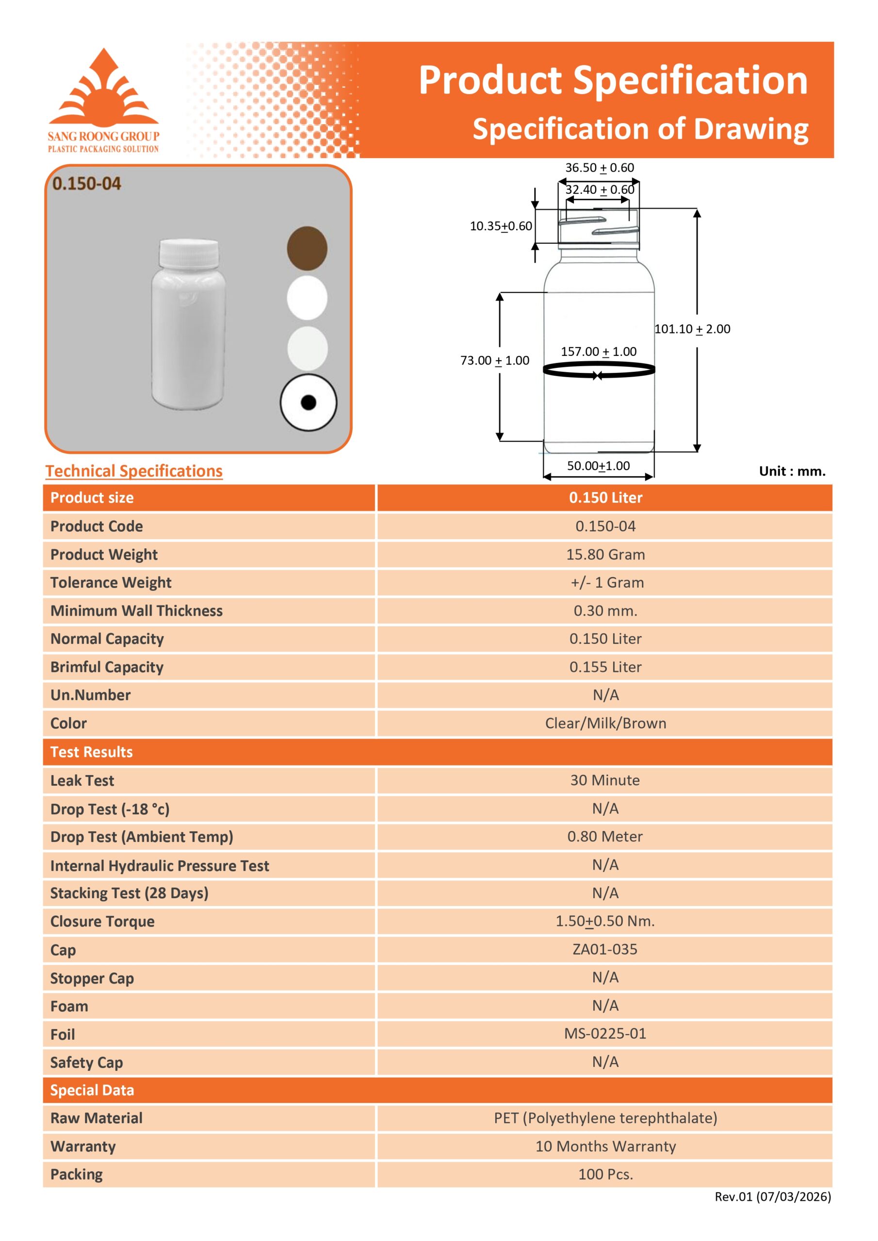 กระปุกบรรจุยา PET 150 ml